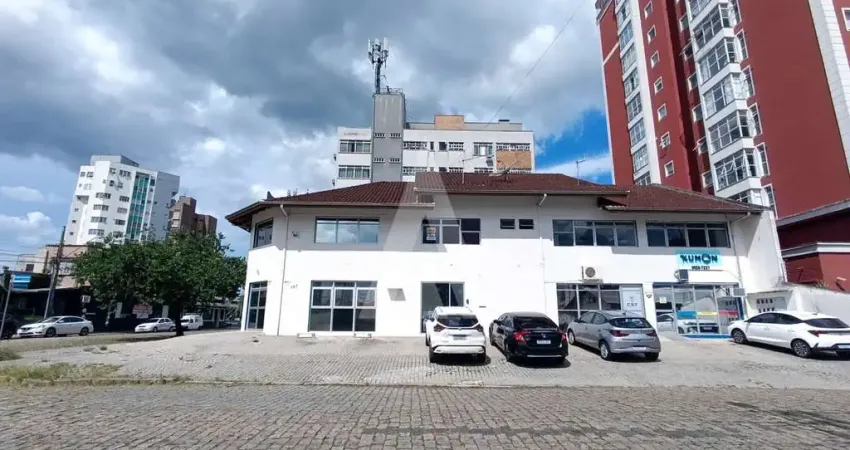 Sala comercial localizada no bairro Anita Garibaldi, de esquina, distribuída entre o 1º e o 2º andar, composta por 2 cozinhas, 5