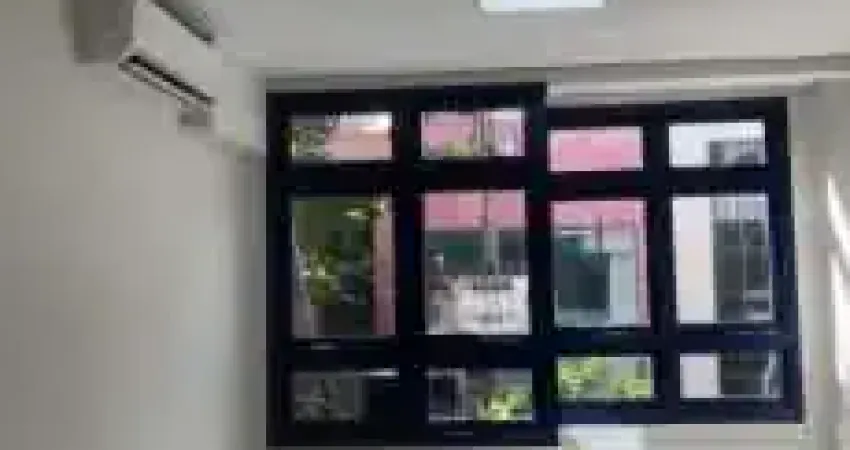 Loja comercial no térreo recém reformada, bem iluminada com mezanino, banheiros e depósito.