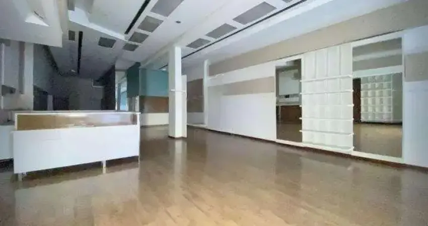 Salão comercial para locação, térreo e mezanino com vagas de garagem frontal e fundos, sendo piso térreo, com área total coberta de 313,4 m².