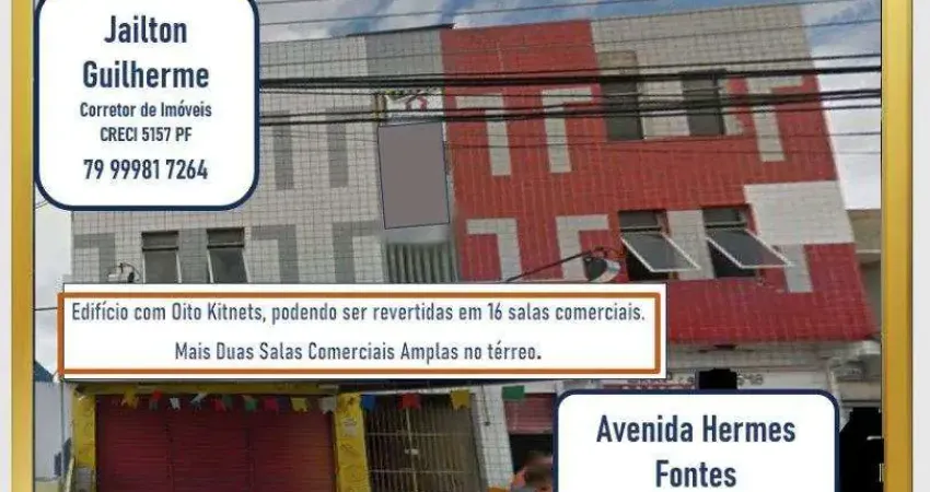 Prédio comercial à venda em Aracaju, na avenida Hermes Fontes! O prédio tem 3 lojas no térreo e 8 apartamentos no primeiro e segundo andar! Os apartamentos tem sala, quarto, cozinha e banheiro! Está localizado em área comercial e residencial com grande circulação de pessoas!