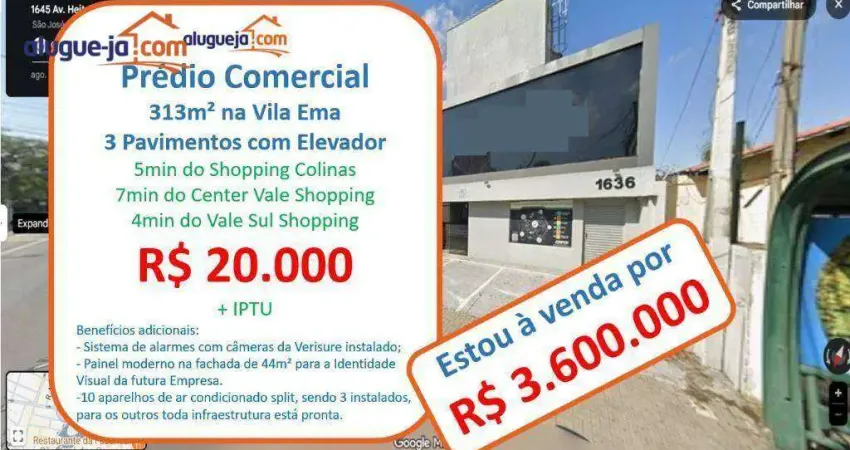 Prédio Comercial para Alugar na Avenida Heitor Villa Lobos Vila Ema com 313m² de área útil em São José dos Campos