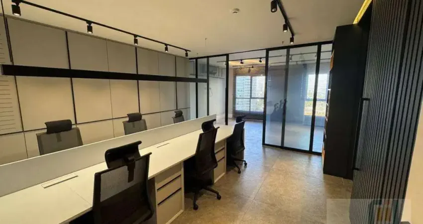 Sala comercial para venda para investidores com renda de 1,07% ao mes (alugada por R$6.330,00) no Condomínio Edifício Alpha Square Offices, em Alphaville. Conta com 55 m² de área útil, banheiro, andar alto e 1 vaga coberta de garagem.