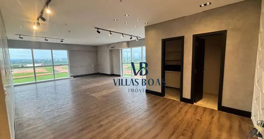 Sala ampla com 71m², nova, nunca habitada, vista maravilhosa, 2 wcs privativos, porcelanato, mini copa, 2 vagas no subsolo, sala com espaços para reuniões e convenções.