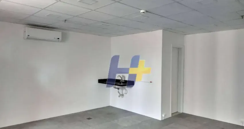 Sala com 41 m² já com piso elevado, forro, luminárias, copa, ar condicionado e 01 vaga de garagem.