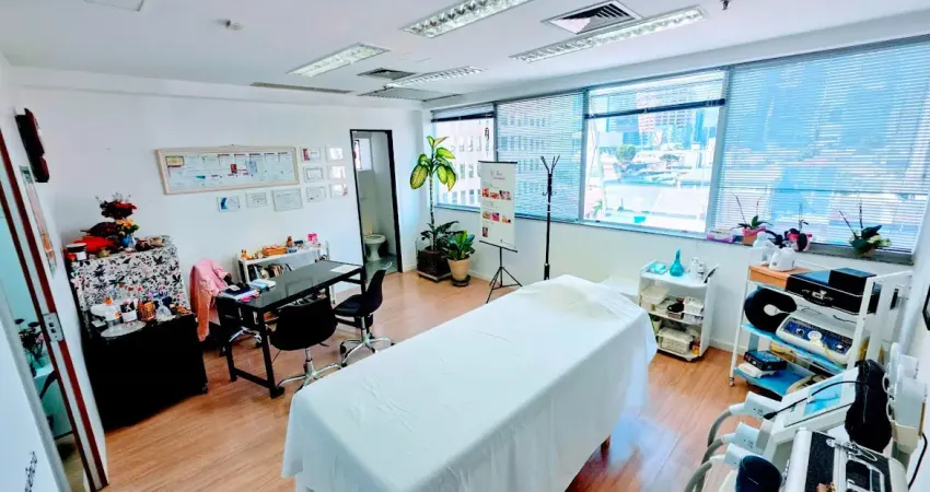 Excelente Conjunto Comercial/Consultorio à Venda – possuindo 34m² de área útil –O espaço conta com: 1 ampla sala, 1 sala menor privativa, 1 recepção e 1 banheiro privativo, ar-condicionado central, além de 2 banheiros externos de uso comum, com direito a 1 vaga de garagem com manobrista.