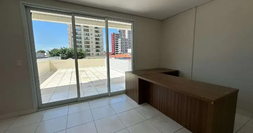 Sala comercial, 32m², 1 banheiro, 1 vaga rotativa com manobrista, portaria e segurança 24 horas, recepção e cafeteria.