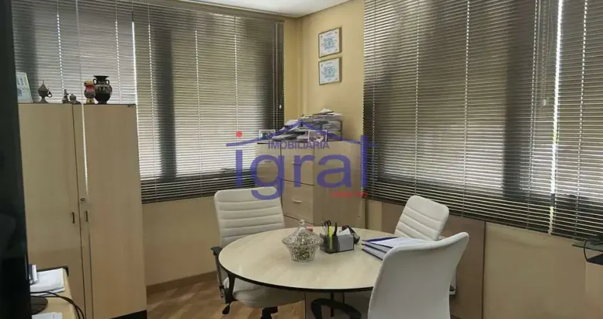 - Conjunto comercial com 38m², possui divisórias de vidro, persianas, ar condicionado, 2 banheiros, copa e 1 vaga de garagem.
