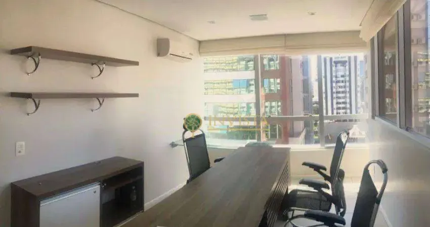 Imóvel mobiliado, 2 banheiros, ambiente amplo e flexível, com sala de reunião, estações de trabalho, recepção e 2 vagas de garagem.
