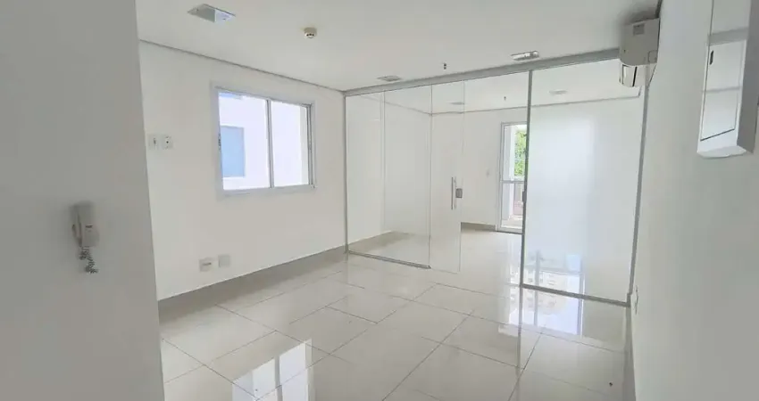 A sala possui 36,63m² e está dividida em dois ambientes o primeiro com espaço para recepção e um banheiro e segunda com divisória de vidro e varanda técnica. O piso em porcelanato confere um ar de modernidade ao ambiente e é de fácil manutenção, A sala é super iluminada. No teto , forro em gesso com luminárias de embutir detector de fumaça e rede de (link removido) sala possuib também 1 vaga de garagem.