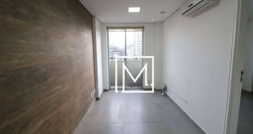 Excelente sala comercial com 32m2, dividida em duas, com dois banheiros, e vaga de garagem..