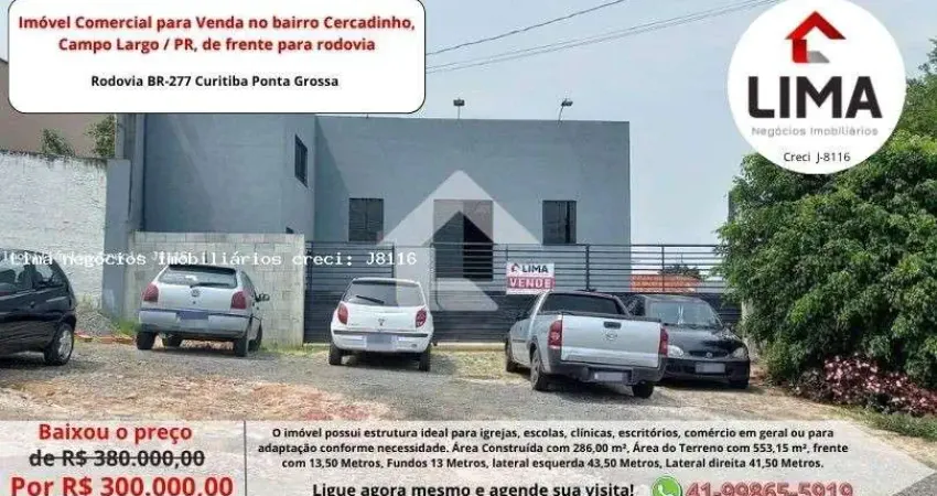Imóvel Comercial para Venda no bairro Cercadinho, Campo Largo PR, de frente para rodovia próximo a Lonagro.