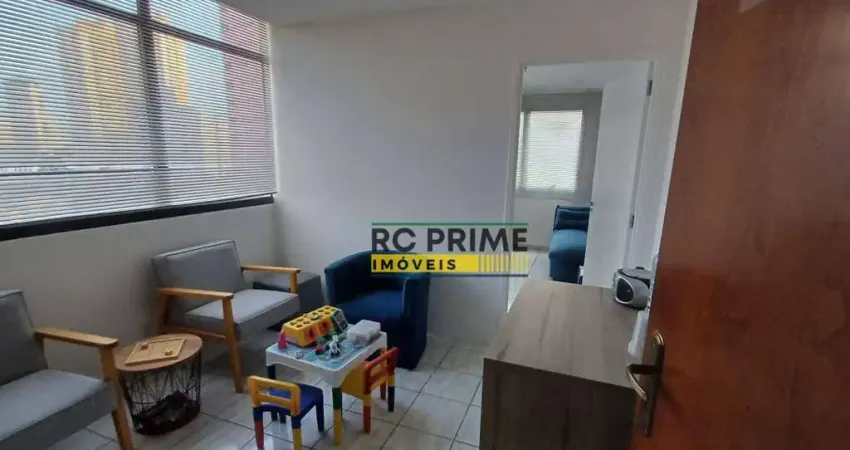 Sala comercial 30m², com divisória, 3 janelas, muito clara e ventilada, piso cerâmica, semi-mobiliada, copa, 1 wc, 2 elevadores, portaria física, com direito a estacionamento, estudo formas de pagamento
