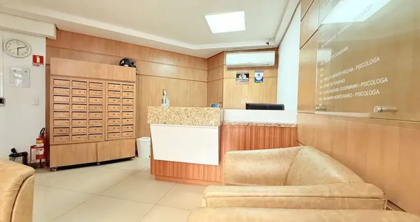 Sala ampla e funcional, com 34m² privativos, situada no 4° andar de um prédio totalmente reformado. Conta com duas vagas cobertas de garagem, um diferencial importante na região.