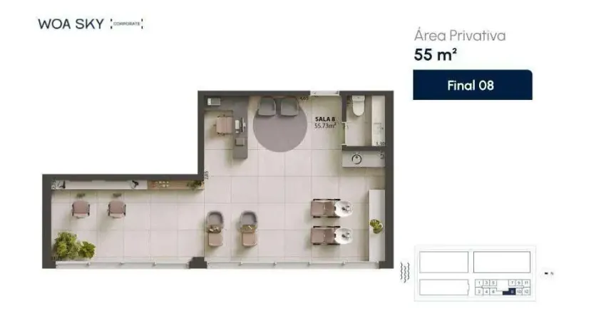 - Sala comercial com 55m² privativos