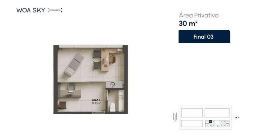 - Sala comercial com 30m² privativos