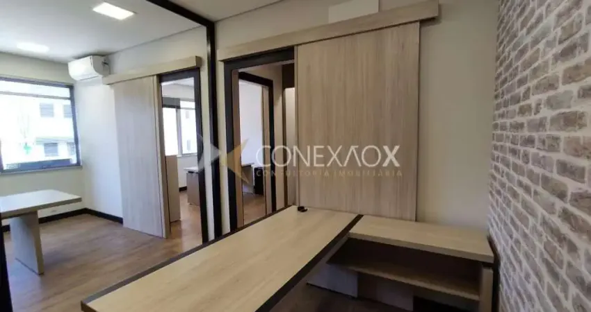 Sala Comercial no Centro de Campinas. Excelente imóvel, com piso laminado, rico em móveis planejados, sendo 1 recepção, 3 salas, 2 banheiros, copa e 1 vaga de garagem individual coberta. Sala com persianas, ar condicionado e ventilador. Vista livre. Prédio comercial com portaria 24 horas e elevadores novos. Ótima localização, em frente a prefeitura. Agende sua visita! Conexão X Imóveis. - 08/10/2025