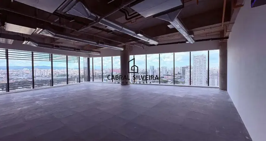 A unidade é entregue com piso elevado, ar-condicionado, conceito open space e estilo de laje aparente, permitindo configuração personalizada da operação. Possui ponto de água e esgoto para copa e banheiro interno, ampliando a autonomia do conjunto. Os sanitários do pavimento também estão disponíveis na área comum.