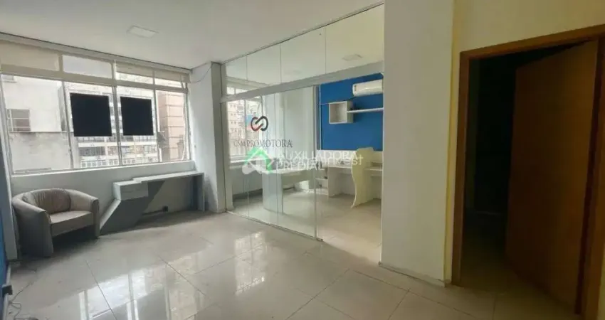 Sala comercial á venda no centro de Porto Alegre. Edifício City, na Marechal Floriano Peixoto, próximo da José Montaury. São duas salas unidas , perfazendo área privativa de 55m². De frente, com sol leste, semimobiliada, copa e cozinha, banheiro reformado. No 5° andar. Prédio com portaria 12horas e dois elevadores. Ficam no imóvel split instalado.