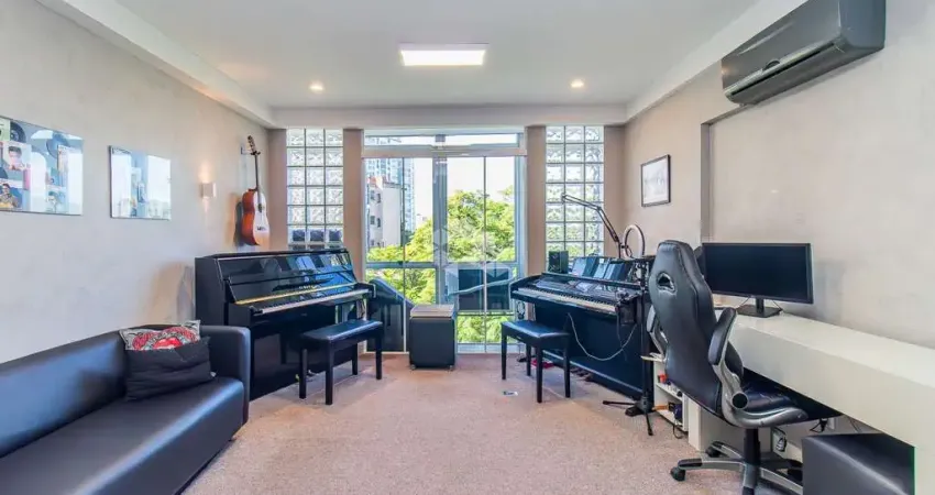 Sala comercial com vista privilegiada para a copa das árvores, oferecendo um ambiente acolhedor, silencioso e inspirador. Ideal para estúdios musicais, consultórios terapêuticos ou outras atividades que demandem privacidade, contando com dupla vedação e tratamento acústico que garantem conforto sonoro. Possui lavabo privativo e uma copa interna, um diferencial raro dentro do empreendimento.
