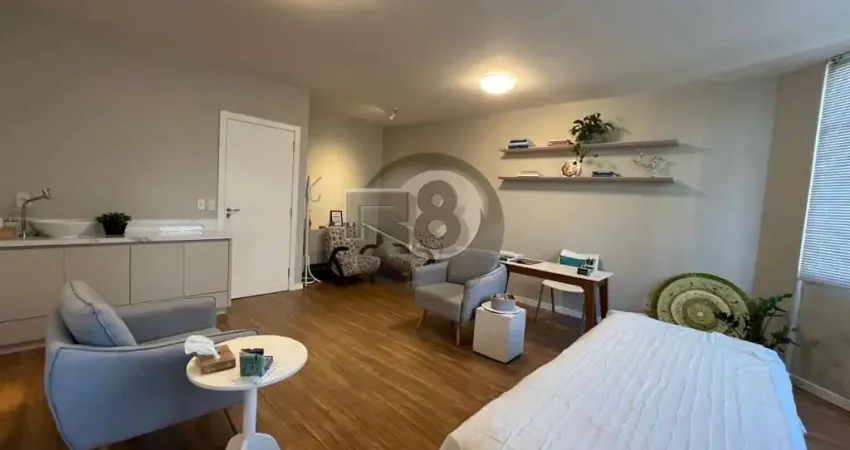 Sala comercial com 40,5m² privativos toda reformada. Possui aconchegante piso laminado em todas as áreas, recepção com espera para split e banheiro social com design contemporâneo. Amplo espaço de atendimento podendo ser subdividido em mais ambientes, todo ele cercado horizontalmente por aberturas que proporcionam vista livre e ótima iluminação e ventilação natural. Acabamentos em perfeito estado. Conta ainda com vaga de garagem livre e coberta.