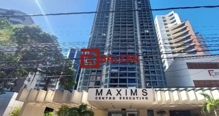 Excelente sala comercial com 32,31m² privativos, bem distribuída em dois ambientes, além de recepção e banheiro. O espaço conta com três aparelhos de ar-condicionado já instalados, armários planejados e pia de apoio.