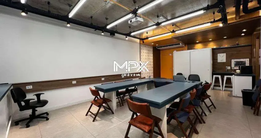 O imóvel é composto por 51,17 m² de área útil, distribuídos em sala ampla com ar-condicionado, armário planejado e projetor, pequena copa com armários planejados, forno elétrico, bebedouro, cafeteira e frigobar, além de 2 banheiros. As mesas retráteis podem ser removidas para ampliar o espaço, garantindo maior versatilidade ao ambiente. Conta ainda com 1 vaga de garagem e serviço de valet no edifício.