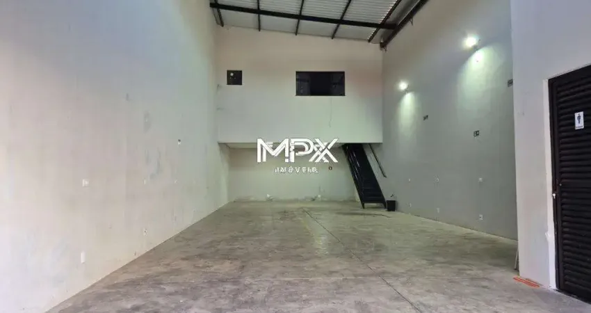 O imóvel é composto por 175,00 m² de área útil, distribuídos em piso térreo de 165,00 m² (amplo salão e 2 banheiros) e mezanino de 20,00 m² (1 banheiro social). Conta ainda com recuo para 2 carros e portão/porta automatizados.