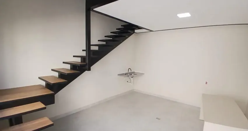 Sala possui um mesanino, tem entrada , uma pia e saída pela lateral .