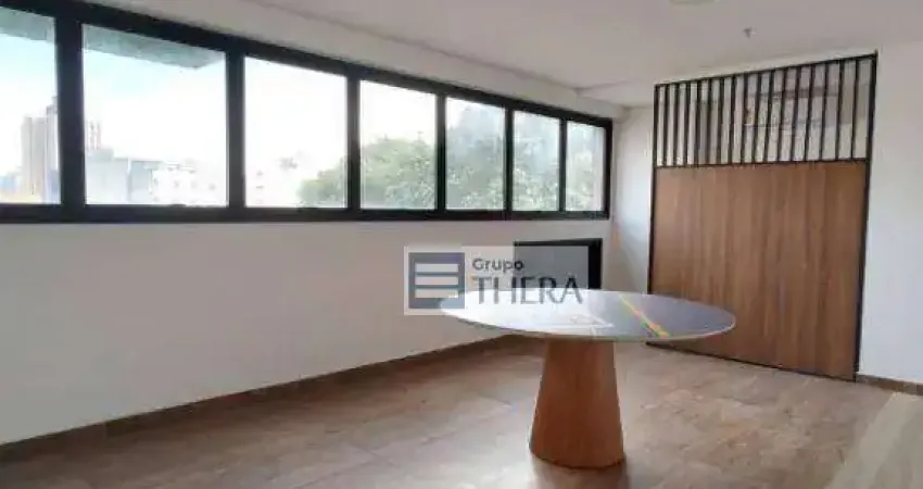 Sala comercial para locação mobiliada, são 34 m² com piso vinílico, forro de gesso, iluminação de LED, ar condicionado instalado, copa, 1 banheiro, 1 vaga coberta. Prédio com recepção e valet. Excelente localização à 5 minutos dos Hospitais, Cristóvão da Gama, Hospital Brasil e Mário Covas. Agende uma visita com a Thera Imóveis!!