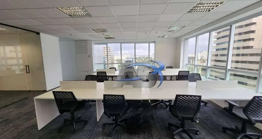 Conjunto com 136m², todo em vão livre para melhor flexibilidade de layouts, em andar alto, vista linda, piso elevado , todo em carpete, teto em forro mineral com luminárias refletivas, sistema de ar condicionado central com regulagem de temperatura, os banheiros (masculino e feminino) estão localizados no hall , próximo aos elevadores, a responsabilidade do funcionário que realiza esta manutenção de limpeza e higienização fica por conta do condomínio, direito a 4 vagas de garagem.