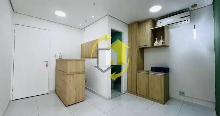 Com 33 m², este espaço conta com boa iluminação natural, uma recepção com marcenaria, 1 banheiro, 1 sala com varanda e ar condicionado em todos os ambientes.