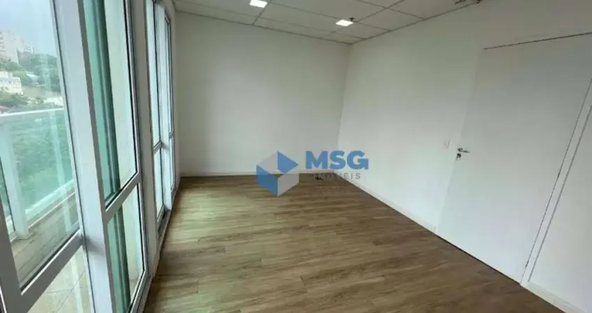 Ideal para consultórios e clínicas, esta sala oferece uma estrutura completa: piso elevado com acabamento em laminado, forro de fibra mineral, recepção, copa privativa, banheiro e uma vaga de garagem coberta. A sacada com portas de vidro proporciona ótima ventilação e iluminação natural.