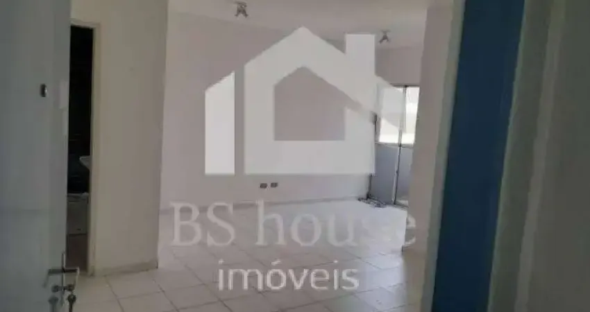 Sala comercial de 31m² com 1 banheiro, piso frio, janela de vidro de correr com acesso a varanda.