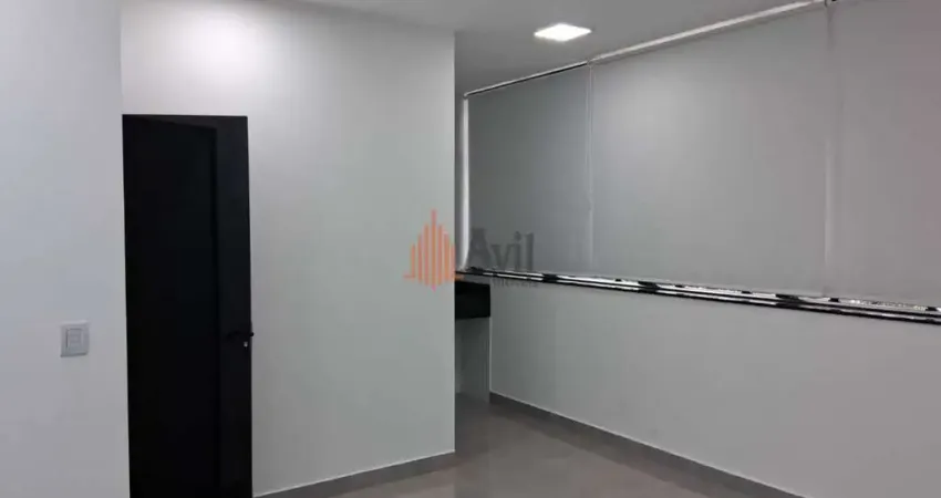 Sala comercial com 19m² e lavabo, com infraestrutura para ar condicionado