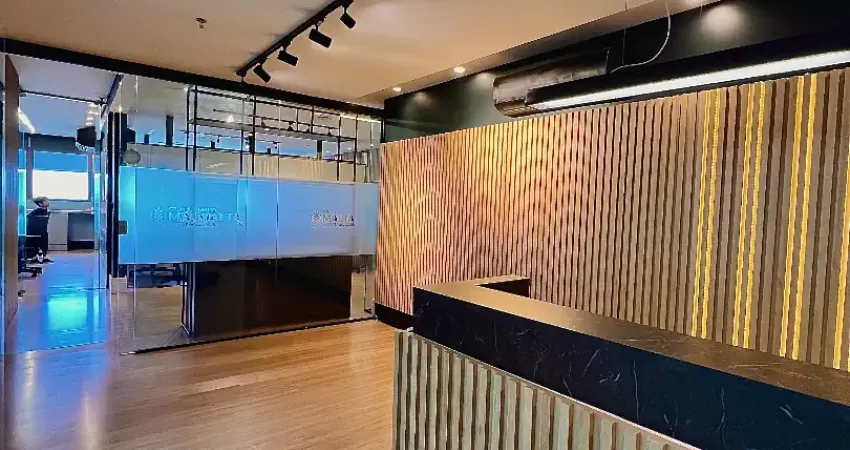Sala comercial premium, totalmente decorada, mobiliada e climatizada, pronta para uso, com 9 salas de trabalho, salas de reunião e infraestrutura completa.