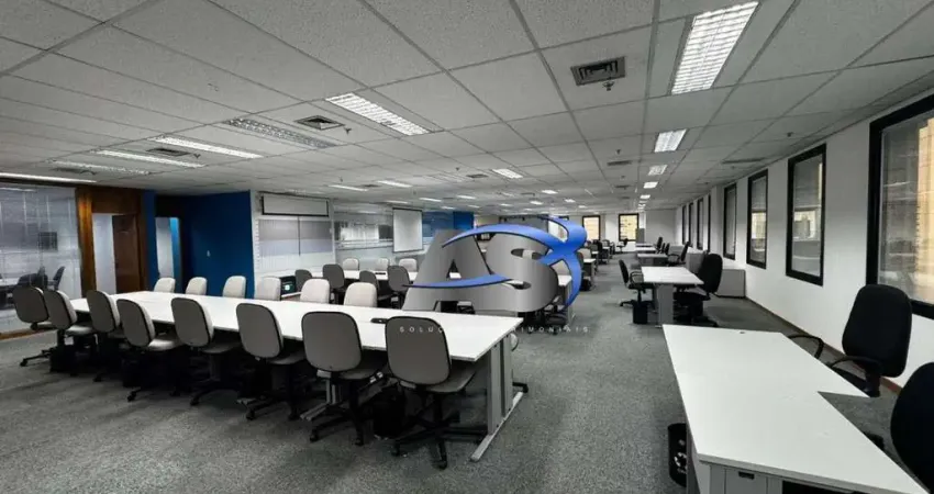 Andar comercial bem localizado com disponibilidade de locação com 644,00 m² (vide fotos, layout - consulte-nos para maiores informações, MOBILIADOS E EQUIPADOS em piso elevado com revestimento em carpete em vários ambientes , piso frio nos banheiros e copas, forro com revestimento em placas de fibra mineral; luminárias embutidas, ar condicionado central e 18 vagas de garagem. O layout contém recepção, 04 salas de reuniões (4/7/14/14) posições cada, Staff com 106 posições de trabalho, sala de treinamento com 30 posições, sala de welcome com 04 posições, Pool de computadores entorno de 25, sala de almoxarifado, 01 copa , 06 banheiros.