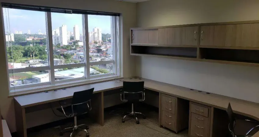 Sala com 45 m² com 2 salas sendo 1 de reunião com mesa e cadeiras e outra sala com 06 estações de trabalho + Copa com mesa, piso em carpete, 01 banheiro e 01 vaga de garagem!