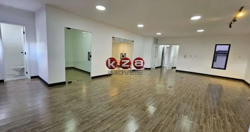 Sala Comercial de Alto Padrão para Locação no Centro de Valinhos-SP: 2 salas, 2 banheiros, 1 vaga, 104m². Venha conferir!
