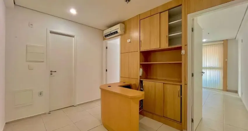 Com 42 m² imóvel dispõe de 3 salas, 2 banheiros (1 com armários), 1 recepção com armário e balcão, teto com luminárias de LED, 3 ar condicionados, além de 1 vaga de garagem.