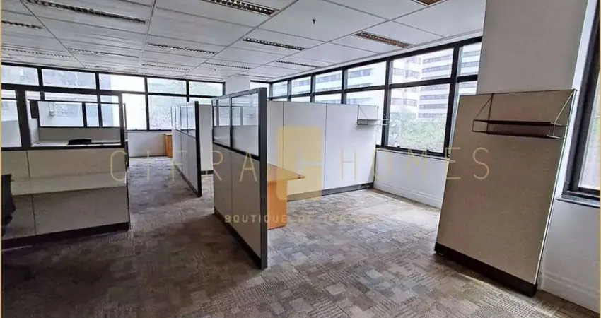 Conjunto comercial com 125 m² de área privativa, distribuído de forma prática para receber diferentes configurações de layout, contando com piso elevado, forro e persianas já instalados. Possui dois banheiros e copa. O espaço dispõe de três vagas de garagem exclusivas, com acesso facilitado por meio de três elevadores, além de recepções posicionadas no térreo e na garagem, que contribuem para o controle e a organização do fluxo de visitantes e colaboradores. O edifício apresenta padrão corporativo, com áreas comuns bem conservadas e estrutura voltada à eficiência operacional, oferecendo portaria com atendimento em horário comercial, segurança, controle de acesso e manutenção constante das instalações. Sua localização estratégica está inserida em uma das regiões mais reconhecidas da cidade pela presença de escritórios, centros de negócios, consulados e sedes de grandes empresas, além de estar próxima a hotéis, restaurantes, cafés e agências bancárias, facilitando o acesso a serviços essenciais para atividades profissionais. O entorno é servido por ampla malha de transporte público, com estações de metrô a poucos minutos de caminhada e diversas linhas de ônibus que ligam a diferentes áreas da capital. As principais vias de acesso, como as avenidas Paulista, Brigadeiro Luís Antônio e Nove de Julho, permitem deslocamentos ágeis tanto para a zona central quanto para outras regiões estratégicas. A presença de centros culturais, teatros e áreas de convivência nas proximidades também favorece um ambiente dinâmico e diversificado, ideal para empresas que valorizam uma localização de prestígio e com facilidades integradas ao dia a dia. CRECI 23.211J