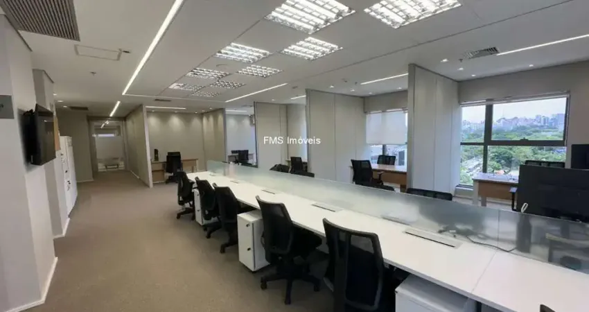 Conjunto comercial mobiliado com 130m2 na Av. Ibirapuera, em Moema. Com 2 banheiros, essa sala espaçosa e moderna é ideal para quem busca conforto e praticidade. Além disso, a localização é privilegiada, próximo a bancos, restaurantes, lojas e com fácil acesso a transporte público.