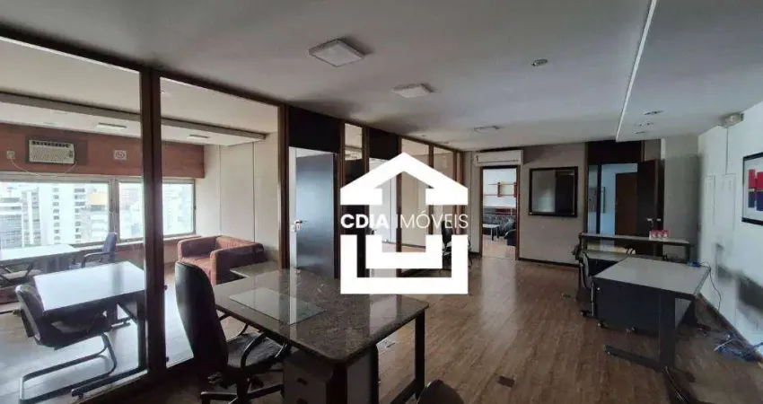 Conjunto comercial para locação com 5 salas, 3 banheiros e 2 vagas, localizado no Jardim Paulista.