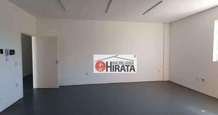 Sala comercial (pavimento superior) com 35,96 m2 e banheiro com 1 vaga de garagem coberta.