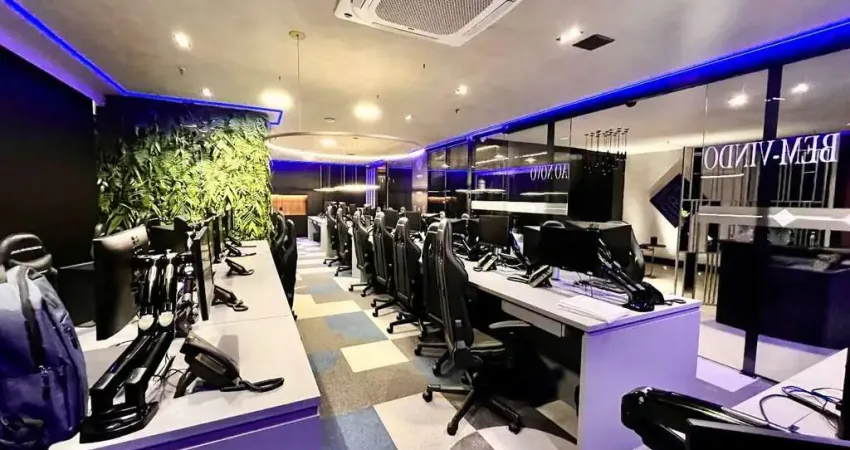 Excelente conjunto comercial finamente equipado e decorado, 250 metros quadrados distribuídos em uma imponente recepção, salão com 45 estações de trabalho, 2 salas de reunião, 1 pequeno auditório, sala presidencial com banheiro, possui copa e terraço mobiliado com lounge para descanso. Tudo automatizado e conectado via 'Alexa' em todos os ambientes. Conta com cabeamento estruturado e conexão Wifi 6G. 3 Vagas de garagem.