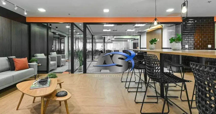 Conjunto comercial de 340m2 totalmente decorado e mobiliado. Com 42 posições de trabalho, 3 salas de reunião, 2 salas de diretor, 5 vagas de garagem. Excelente localização na região do Brooklin, 800 metros da estação de trem da Berrini.