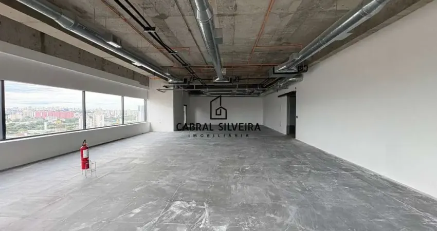 A unidade é entregue com piso elevado, ar-condicionado instalado, conceito open space e estilo de laje aparente, permitindo total flexibilidade de layout e implantação de projetos personalizados. Os banheiros estão posicionados na área comum do pavimento, atendendo à operação com infraestrutura compartilhada de padrão corporativo.