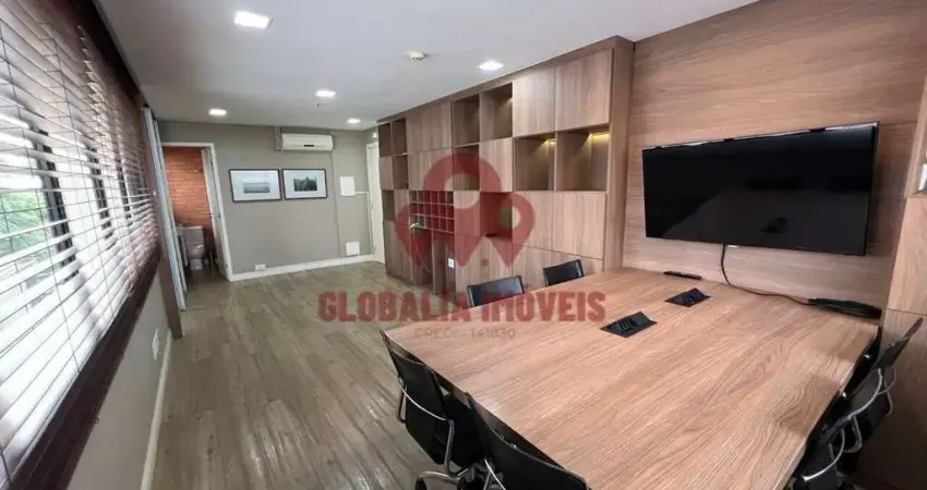 Excelente Sala Comercial pronta para ser ocupada, possui fino acabamento, se encontra totalmente equipada com mesa, cadeiras, TV, dois aparelhos de ar-condicionado e, um banheiro e uma vaga na garagem.
