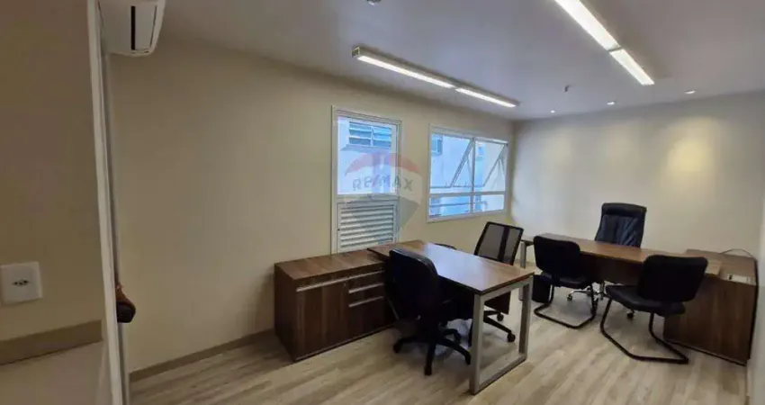 Equipada com ar-condicionado, garantindo conforto térmico. Conta com mesas já instaladas, otimizando a ocupação imediata do espaço.
