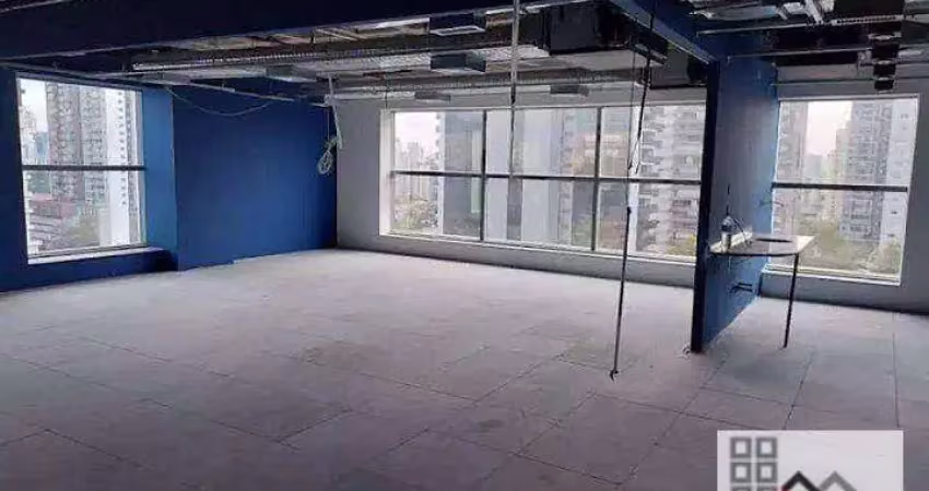 Conjunto comercial com 620m² no Brooklin para locação, Estrutura de piso elevado em ardósia, laje nervurada aparente com luminárias Plafon, 3 banheiros individuais, ar condicionado central e individual, com direito a 18 vagas de garagem com manobristas.