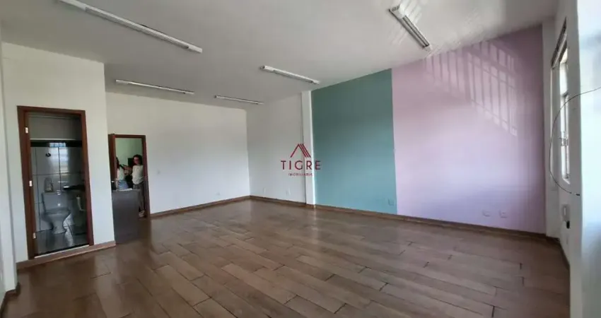 A sala conta com banheiro privativo com armários, oferecendo praticidade e organização. O ambiente é amplo, bem distribuído, com ótima iluminação natural, ideal para escritórios, consultórios ou atividades comerciais em geral.